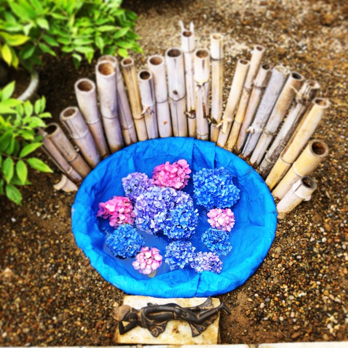 終わりかけのあじさいの花を切り取り、水に浮かべて供養するといった、「花の供養」の方法だそうです